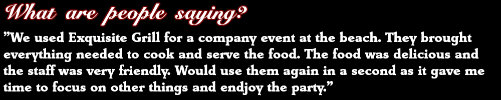 Exquisite Grill Lake Tahoe Banquet Catering Services Exquisite Grill is a fully licensed and insured to provide all food, beverages, staff and equipment for your Lake Tahoe event. There is no job too large or too small for us; so please don't hesitate to ask about our banquet catering services.We also work with multiple subcontractors in the Lake Tahoe and Carson Valley area. We can source local meats and produce. We can set you up with the appropriate tents, equipments and lighting - find specialty items like rustic farm tables, antique western items or the romantic, ruffle covered skirt tables.For more information on our banquet catering, please call us at (530) 544-7671 or email us at [email protected]To view our menus click here. Keep in mind, if you don't see what you want on our menu, just let us know and we can create a custom menu for your banquet.